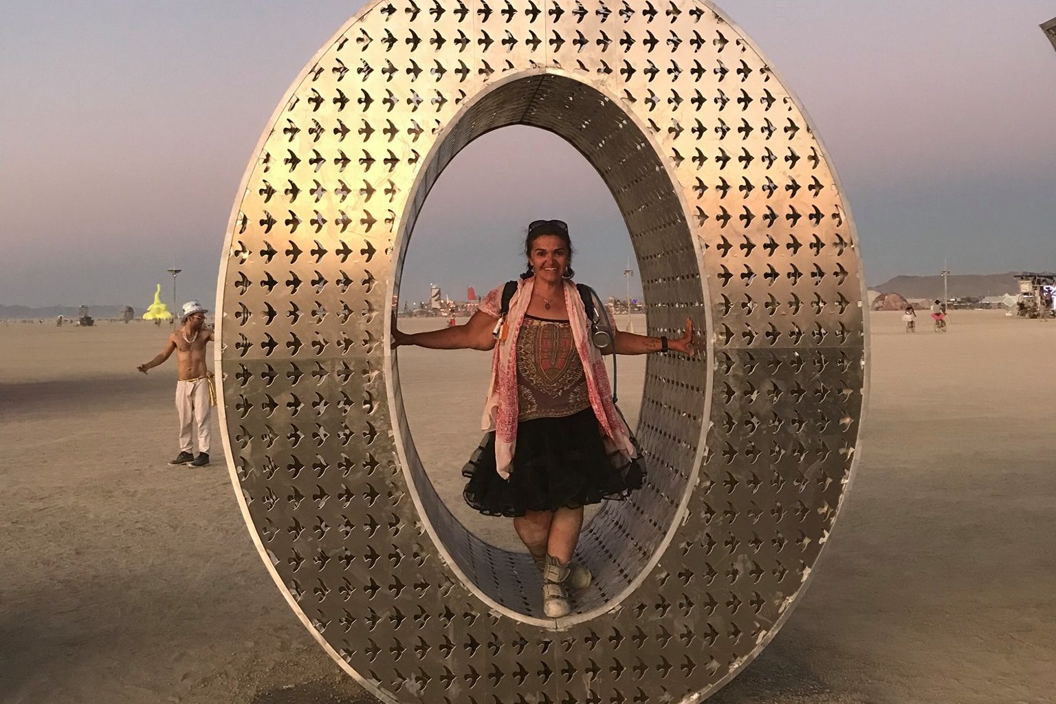 Visitors to the pieces will be invited to interact with the stories the creatures tell. When they draw near, they’ll be able to spot symbols and icons that represent Burner culture and community, from fairy shrimp, bikes, and bacon to Larry Harvey’s hat and logos representing international and regional Burns. To see those, however, they’ll have to be ready to change their perspective on the piece by moving in close. Multi-colored benches will surround the perimeter of the pieces, offering a place for Burners to observe the alebrijes and the humans interacting with them.